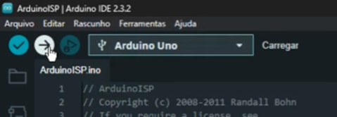 Será aberta uma nova janela, com a programação do ArduinoISP. Programa responsável pela gravação do bootloader.