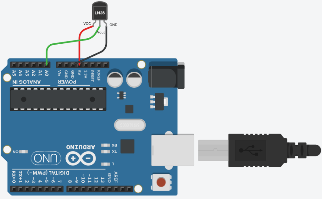 - Output (Vout): Pino de sinal analógico que fornece a tensão proporcional à temperatura.
