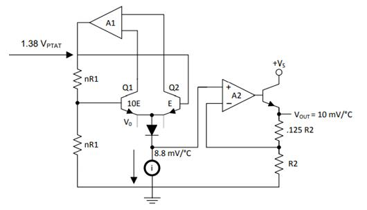 Na verdade, o diodo usado para medir a temperatura não é um diodo de junção PN, mas sim um transistor conectado a um diodo. É por isso que a relação entre tensão direta e transistor é tão linear. O gráfico abaixo que ilustra o coeficiente de temperatura versus corrente do coletor pode ajudá-lo a entender melhor o processo.