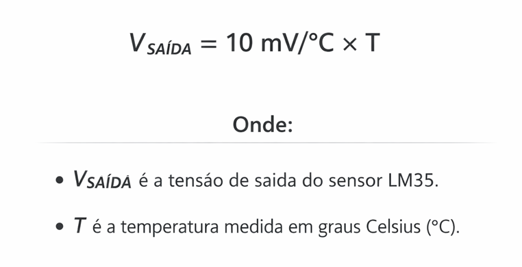 Neste código, a lógica de conversão é fundamental. Multiplicamos a tensão por 100 porque, se 10mV = 1°C, então 1V = 100°C.